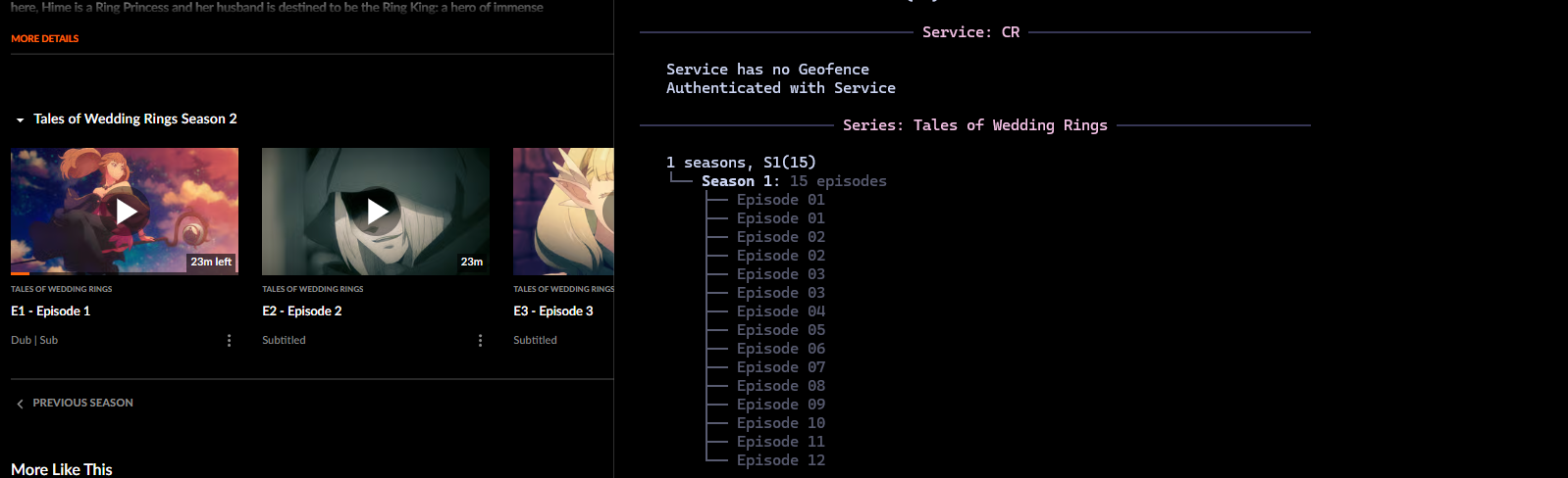 i want to download season 2 of the series https://www.crunchyroll.com/series/G79H23ZGP/tales-of-wedding-rings but when i put it in unshackle it doesn't show season 2, instead it shows season 1 with 15 episodes. but when i use --list-titles season 1 it only shows 12 episodes.